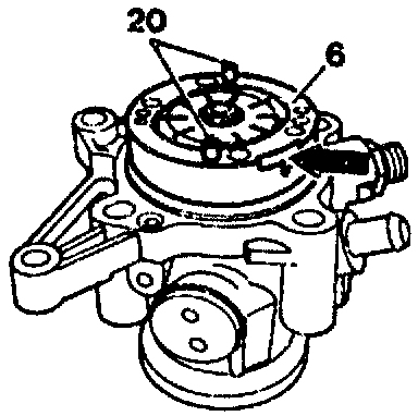 Examine ground face of pressure plate as well as sliding face of vanes on cam insert (6) for signs of scoring and wear.