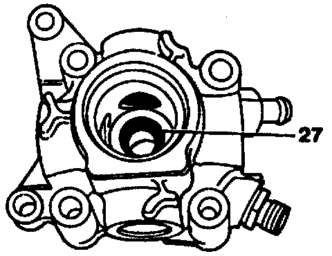 20. Check radial seal ring (27) in the housing. If oil from the high-pressure system is found in the servo circuit or vice versa, the cause may be the radial seal ring (27).