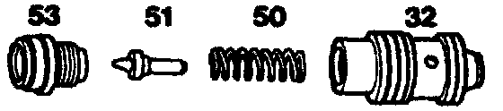 24. Clamp flow control valve (32) in a vise at a part which is not ground and unscrew valve screw (53) of the overpressure valve. Take out sealing cone (51) and compression spring (50).