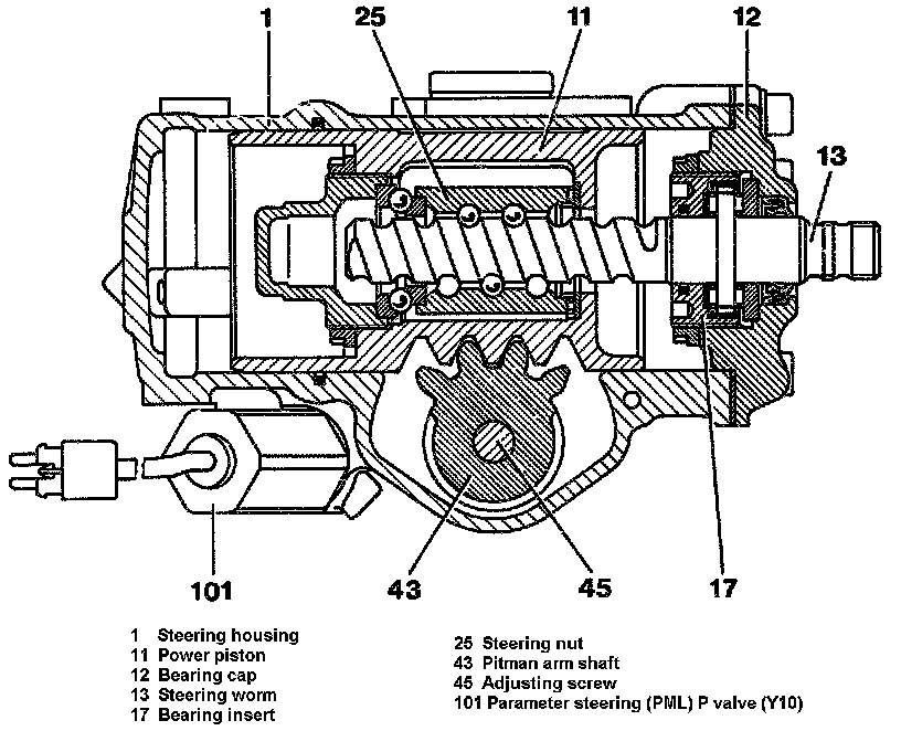 The mechanical transmission section basically corresponds to a manual recirculating ball steering system.