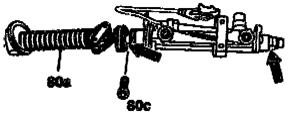 - The hexagon socket bolt (80e, arrow) and the lug on the thrust ring (right arrow) must be in the same position.