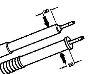 The second hole located 60 mm from the bottom of the shock absorber should not be drilled first. If the shock absorbers are drilled in a horizontal position on a drill press, the pressurized oil will escape in a spray.