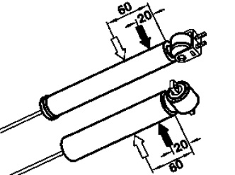 4 Then drill a second hole approx. 60 mm from the bottom of the shock absorber.