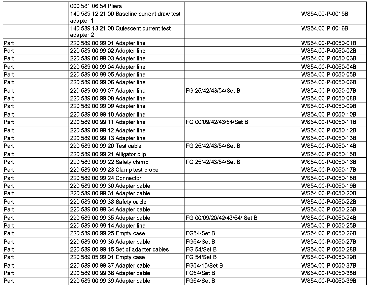 WS00.00-P-0279Z 220 589 05 99 00 Electrical Connection Kit