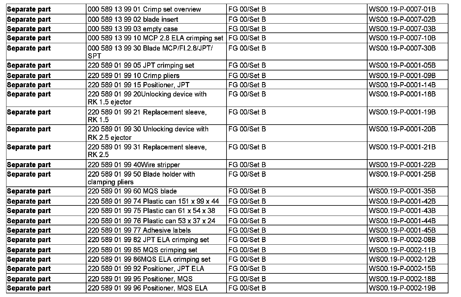 WS00.19-P-0007B 000 589 13 99 00 Wiring Harness Repair Kit, Basic