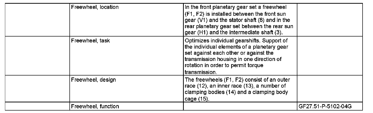 GF27.51-P-5102G Location/Task/Design/Function of Freewheel
