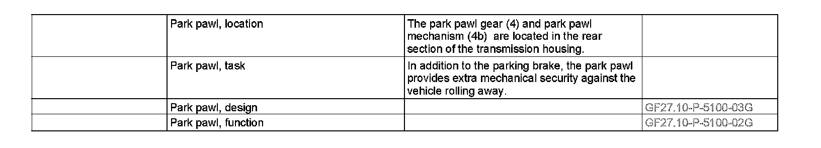 GF27.10-P-5100G Parking Lock, Location / Task / Design / Function