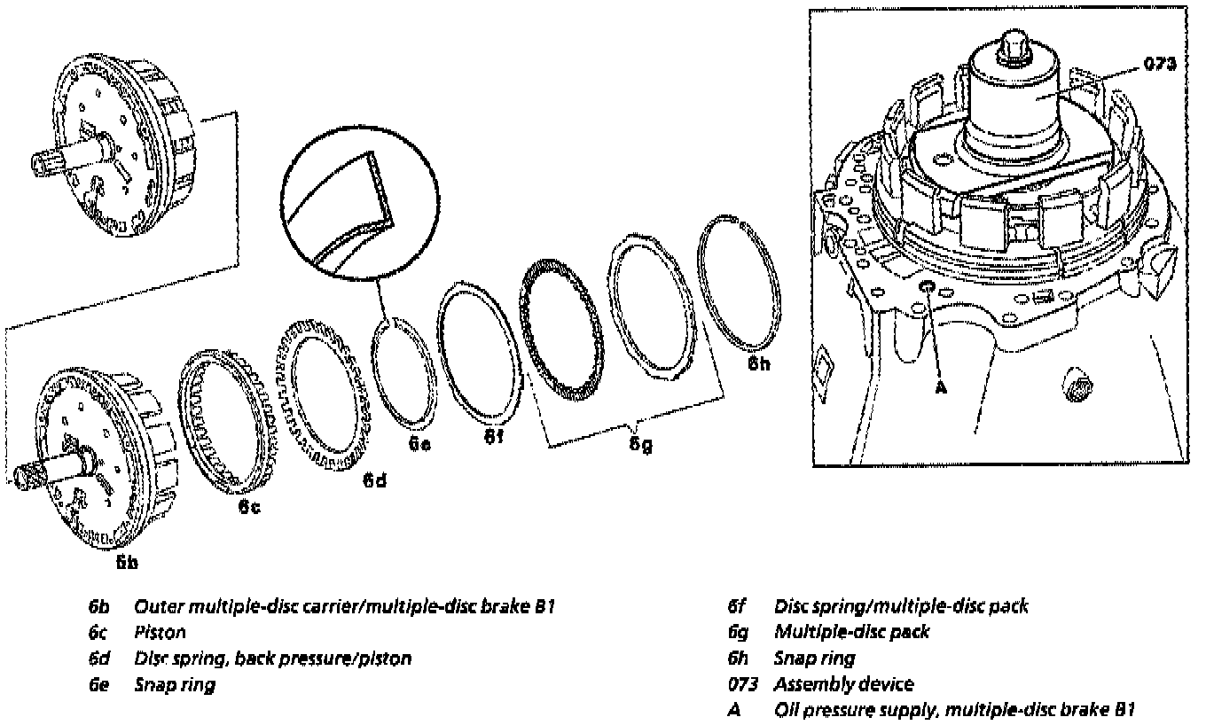 1. Install piston (6c) in outer multiple disc carrier