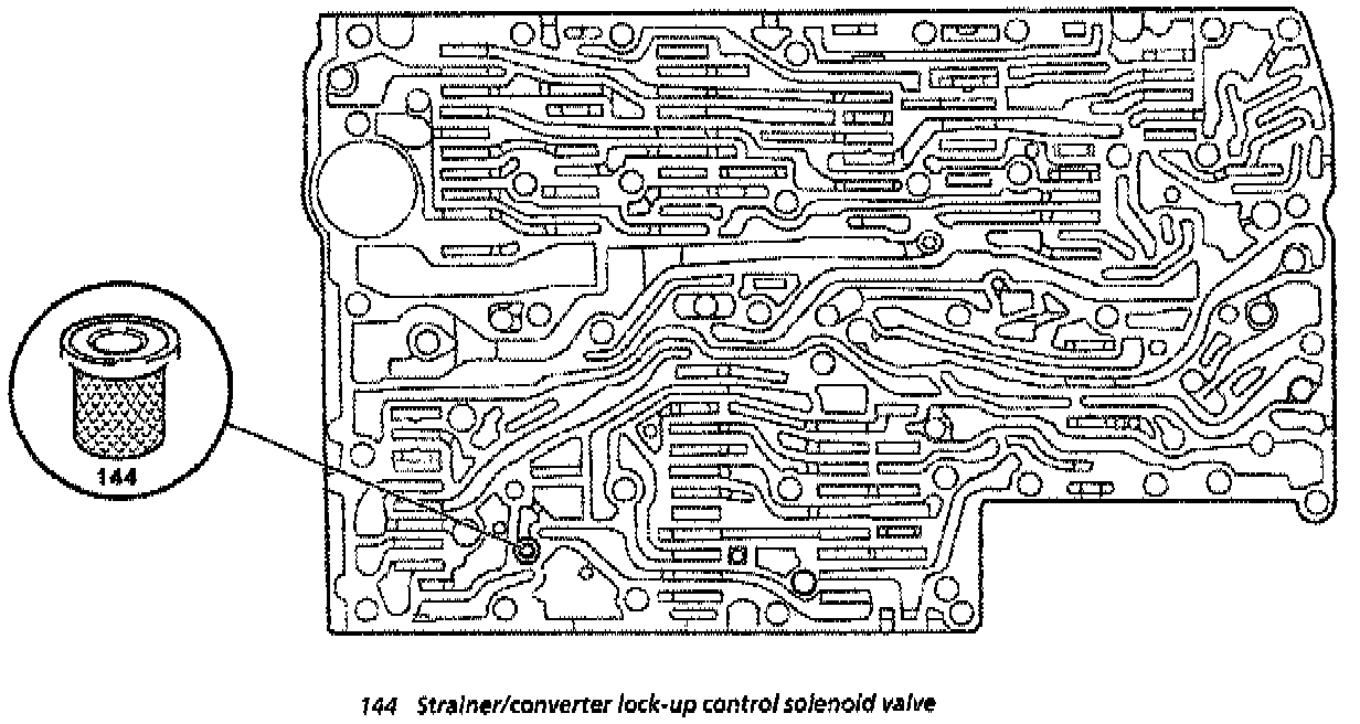 5. Remove strainer in inlet to converter lock-up control solenoid valve