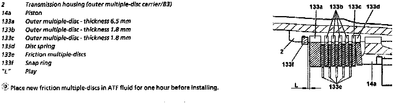 4. Insert and measure disc spring (133b) and multiple-disc pack B3 (133) as follows: