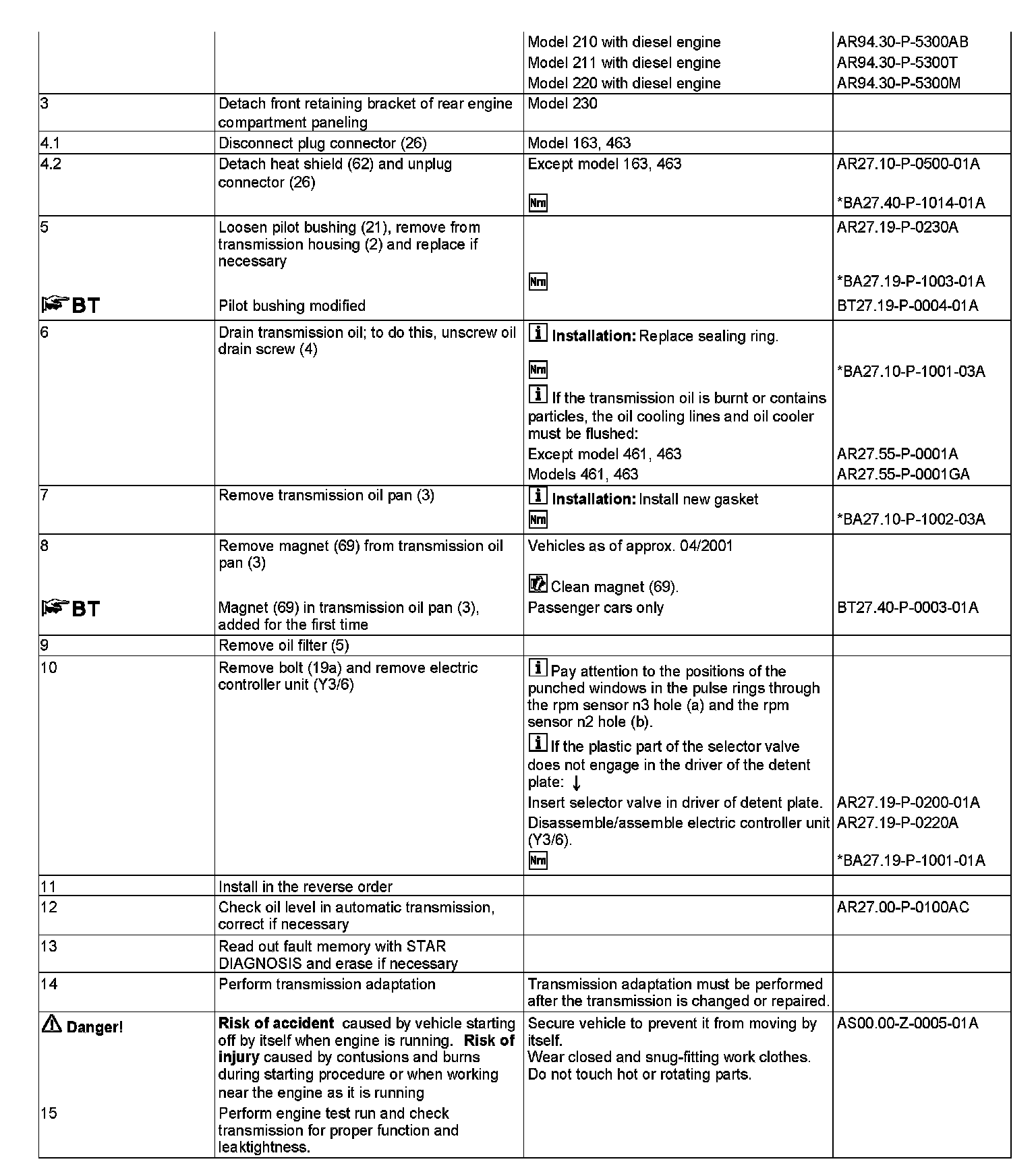 TRANSMISSION 722.6 in MODEL 461, 463 (except 461.331, 463.270 /271)