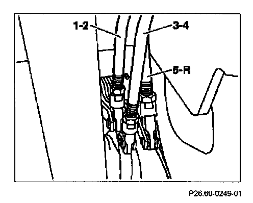 2 Disengage, engage (1-2, 3-4, 5-R) at the intermediate shift levers