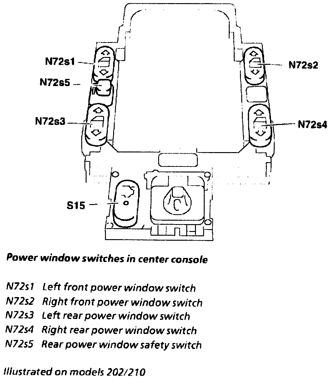 are fulfilled the lower control panel control module (N72) transmits a CAN message to the affected door control module indicating the switch position. The CAN message can be transmitted for a maximum for 25 sec. when the switch is actuated continuously. If the window has not been synchronized the lower control panel control module (N72) receives a corresponding CAN message. It then transmits the switch position "manual window up" when the switch is moved to the "one-touch window up" position.