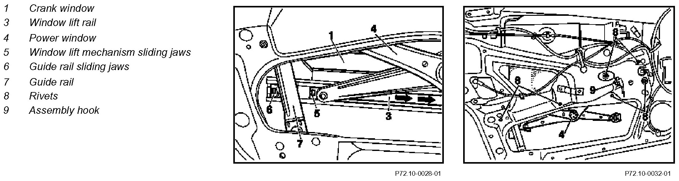 AR72.10-P-1800E Removing And Installing Window Lift Mechanism In Front DoorComponent Identification: