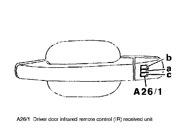 The trunk lid infrared remote control (IR) receiver unit (A26/3) is mounted on the rear lock.