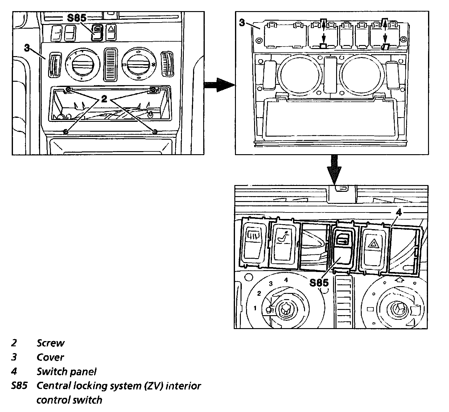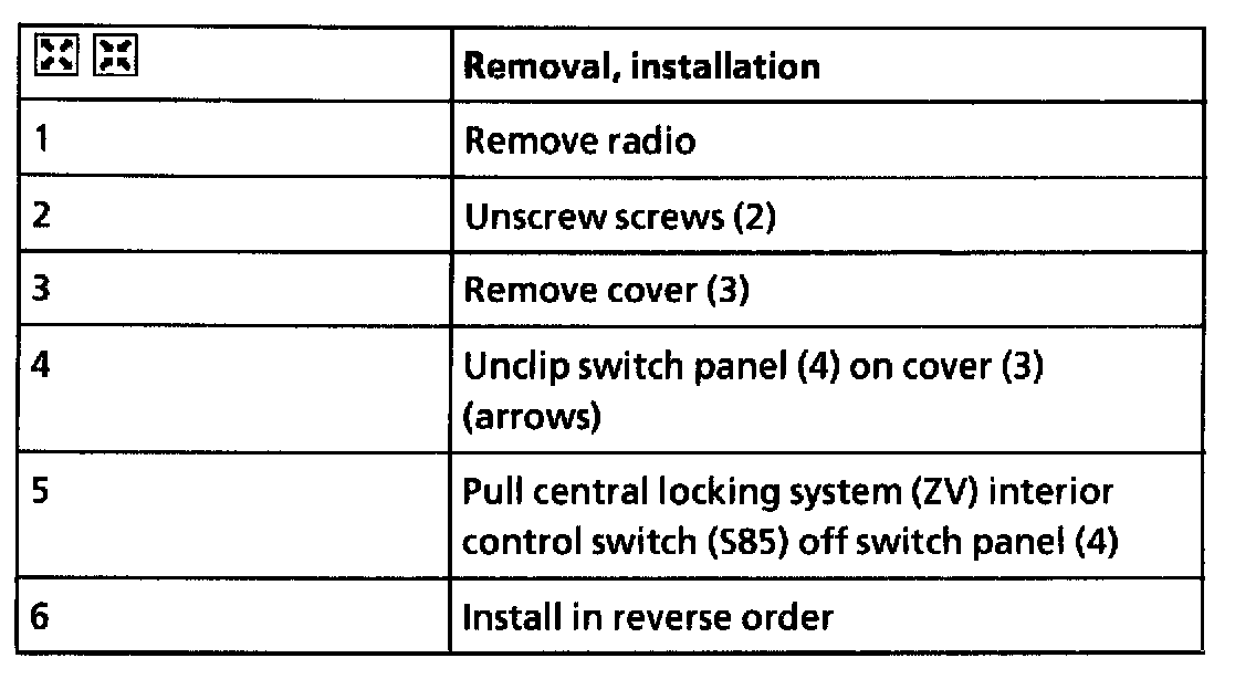 Remove/Install Central Locking Interior Control Switch