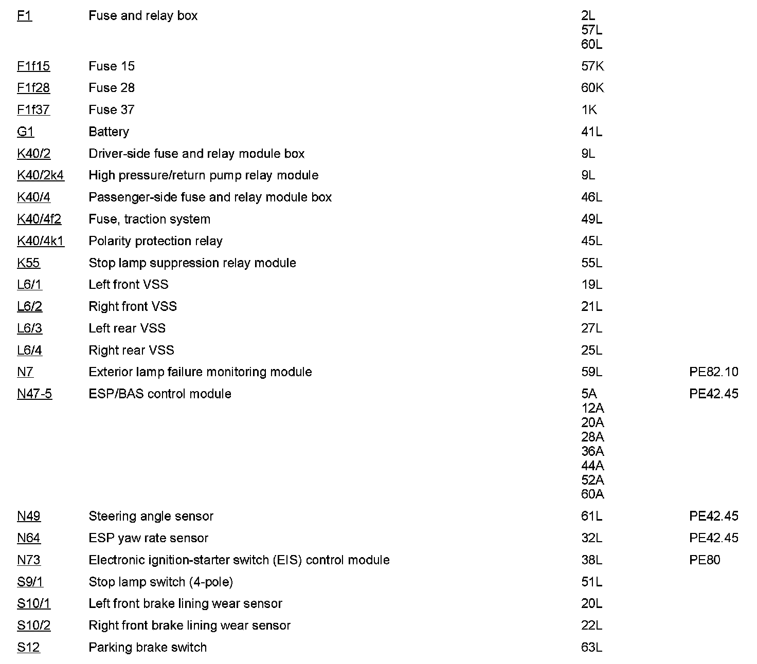 Component Description/Coordinates, F1 To S12: