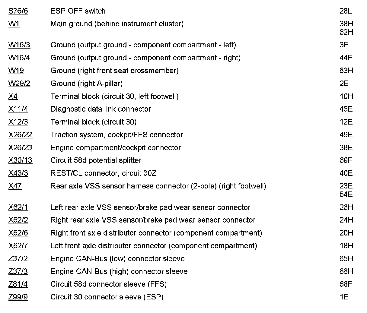 Component Description/Coordinates, S76/6 To Z99/9: