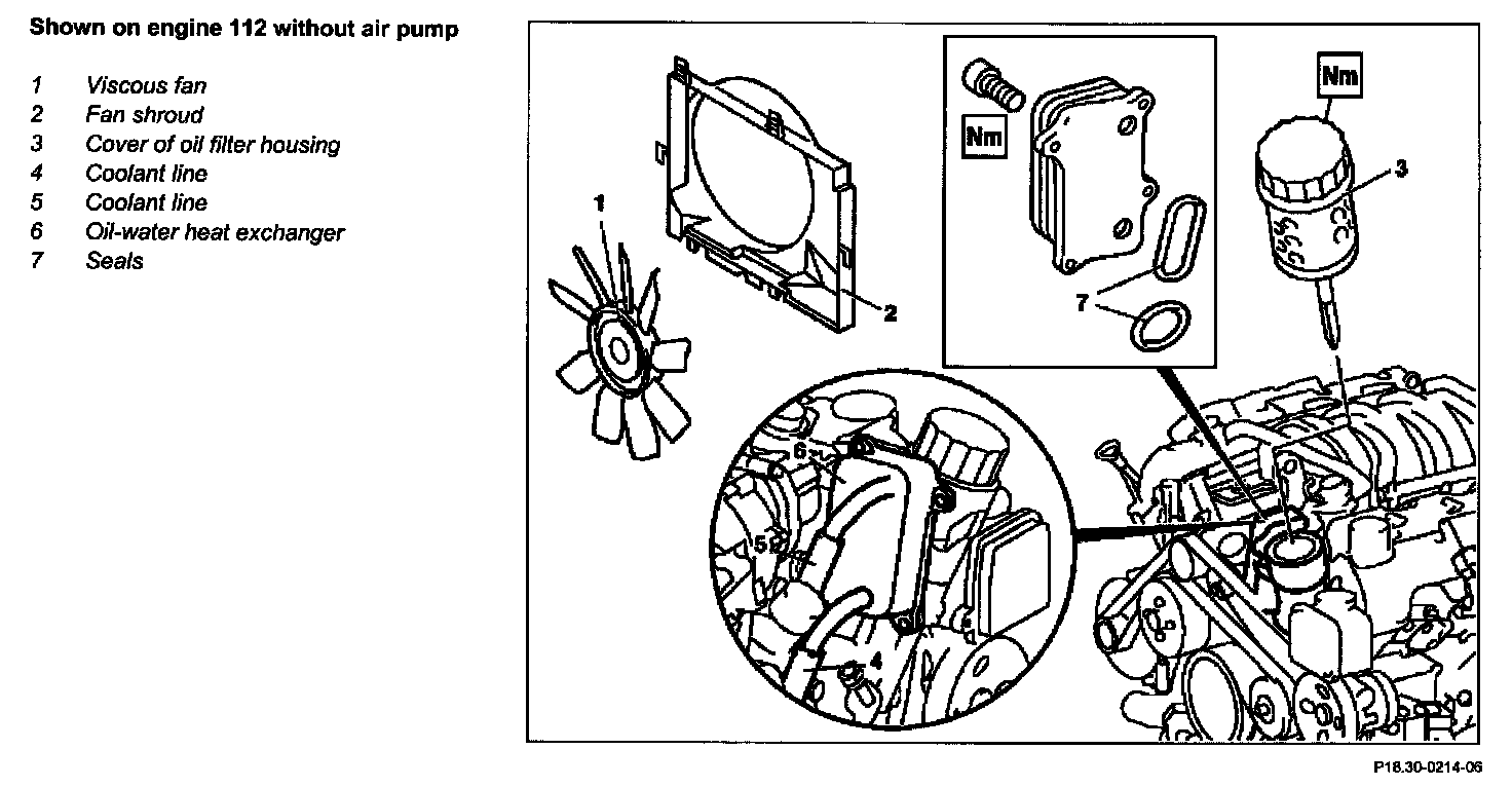 9 Detach oil-water heat exchanger (6) from oil filter housing