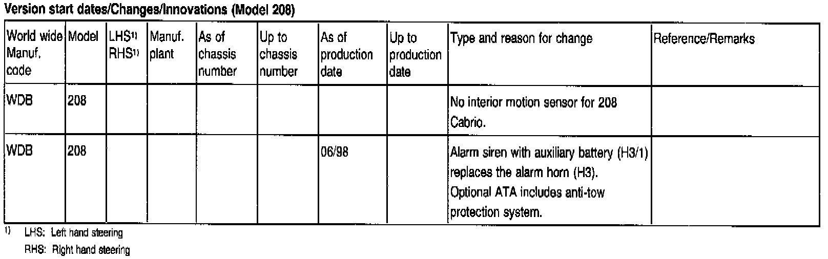 Version start dates/Changes/Innovations