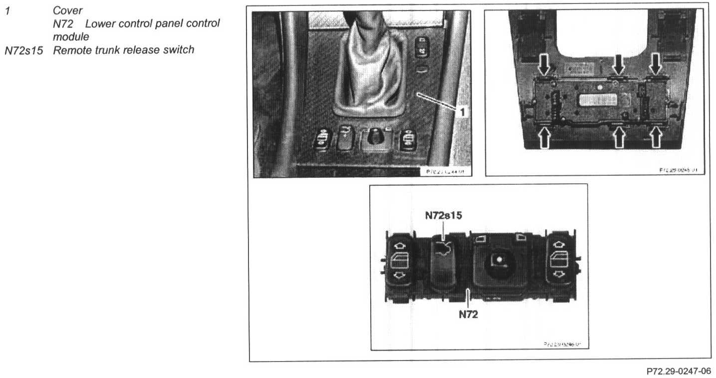 3 Unclip lower control panel control module (N72) (arrows)