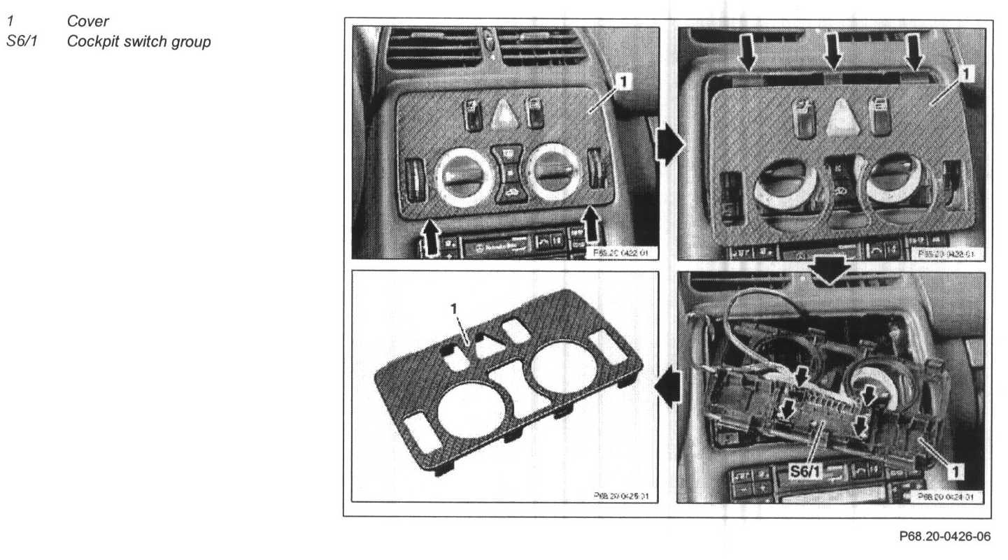 2 Unclip cockpit switch group (S6/1) (arrows)