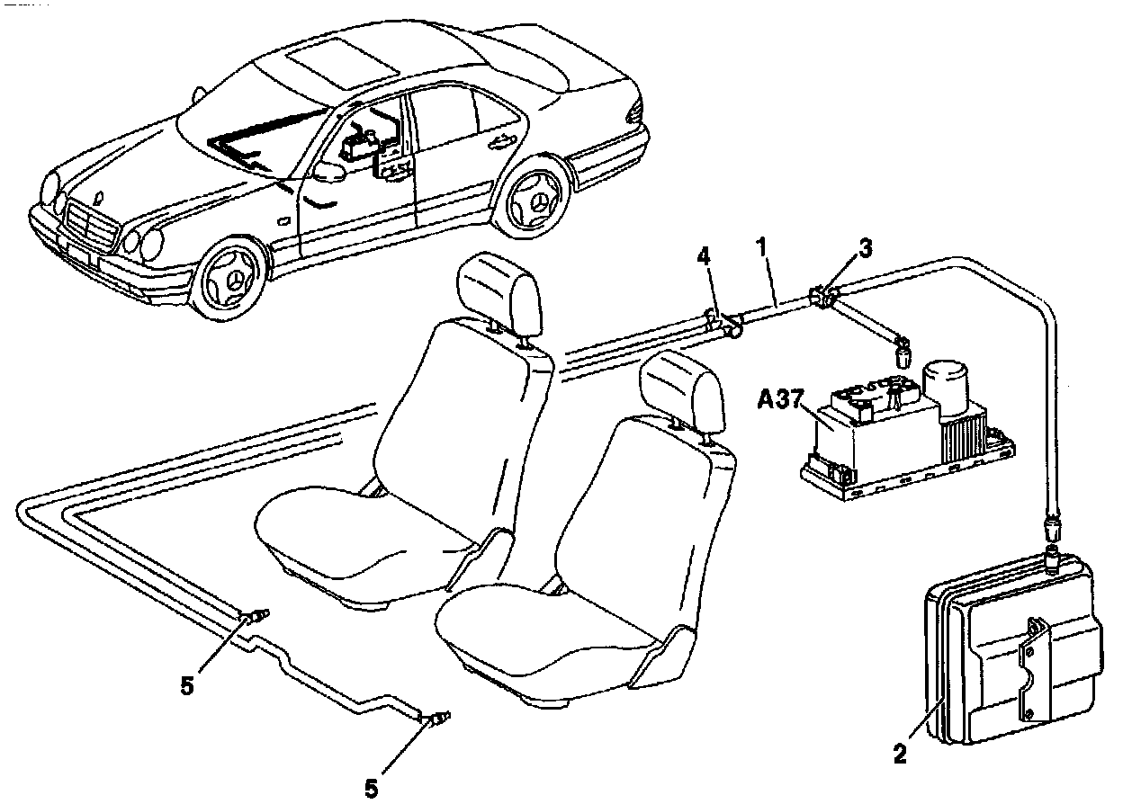 4 Pneumatic line, distributor (both front seats only)