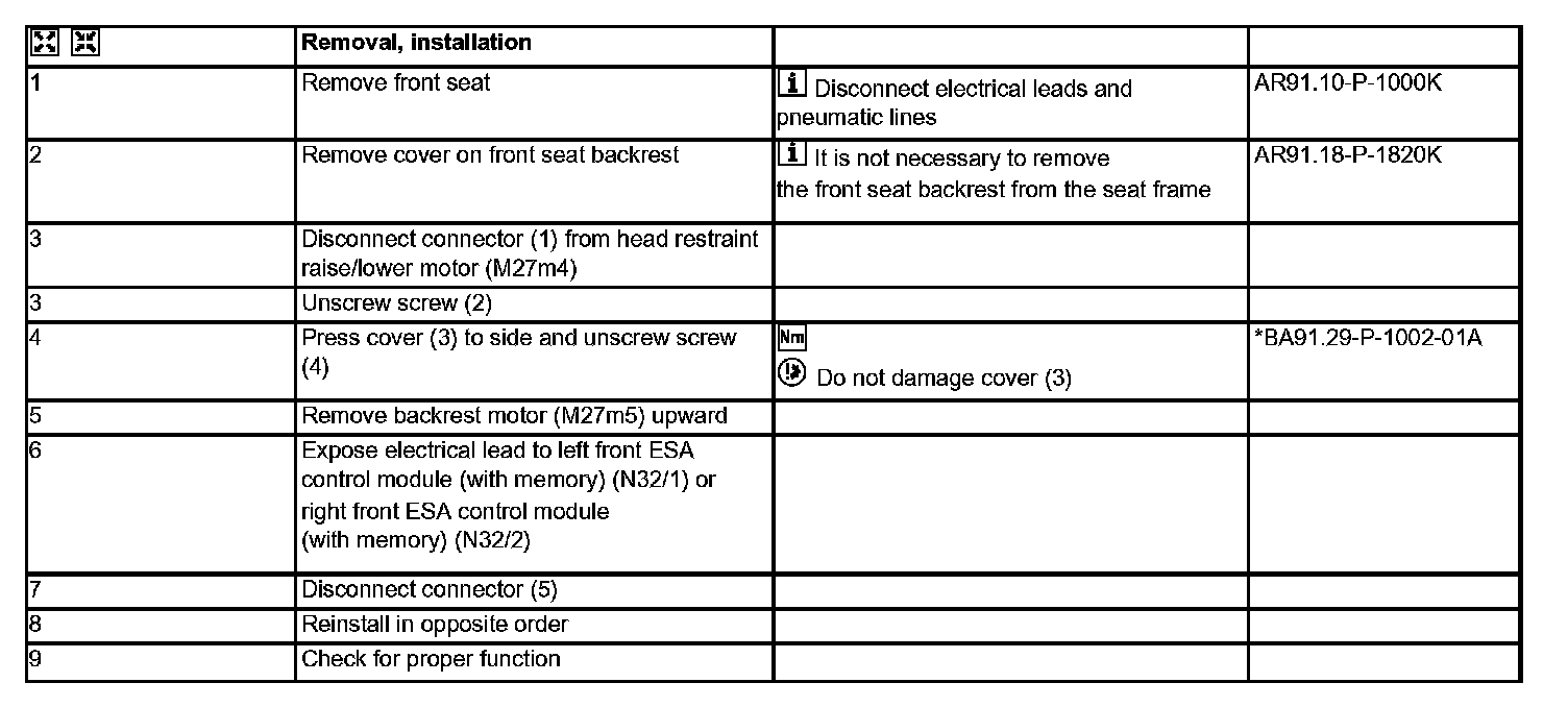 AR91.29-P-1431K Remove/Install Front Seat Backrest