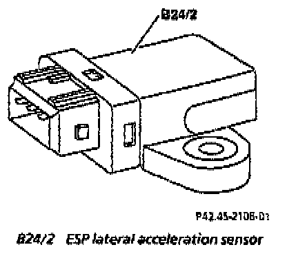 The lateral acceleration sensor informs the Electronic Stability Program (ESP) control module (N47-5) about the lateral acceleration force, occurring when cornering