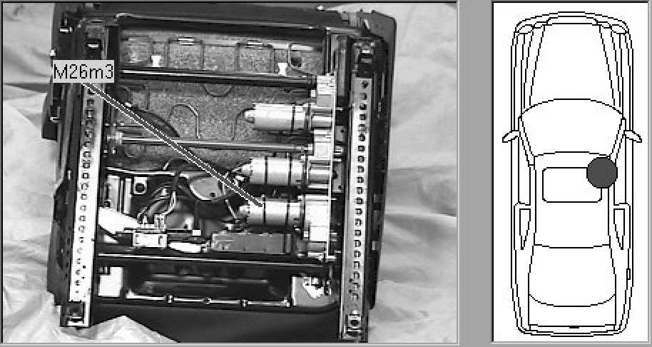 Beneath passenger's seat (looking at bottom of seat).