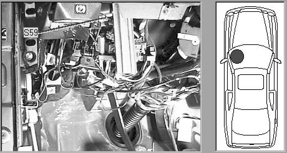 Vehicle interior, beneath dash, to left of steering column, on bracket near ESC release lever.