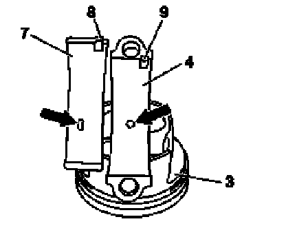 The conrod bearing shell (7) with the oil drilling (arrow) must be installed in the conrod (4) otherwise the conrod bearings will not be lubricated.