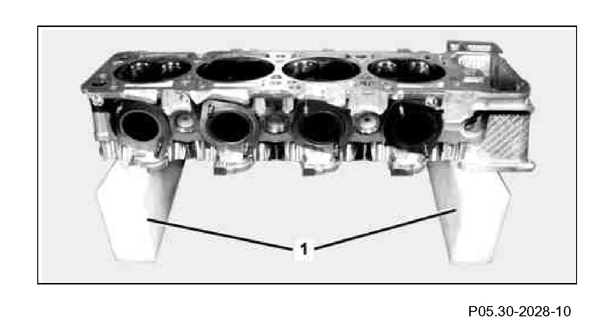 Align the supports (1) that the valve guide to be knocked out cannot hit the supports (1).