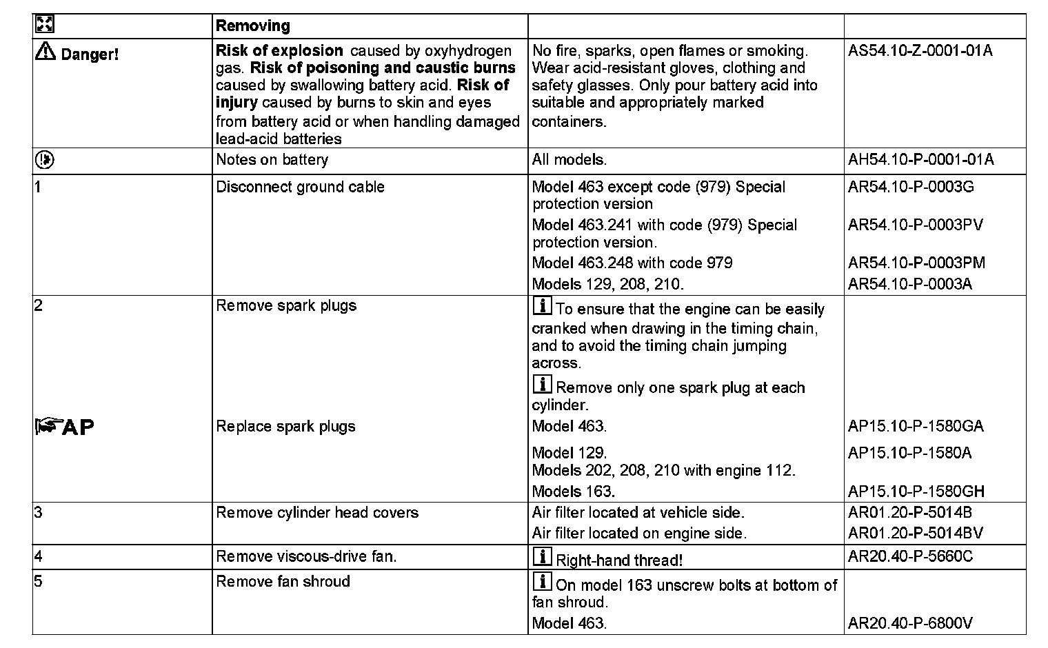 ENGINE 113 (except 113.995) in MODEL 129, 163, 202, 203, 208, 209, 210, 211, 215, 220, 230
