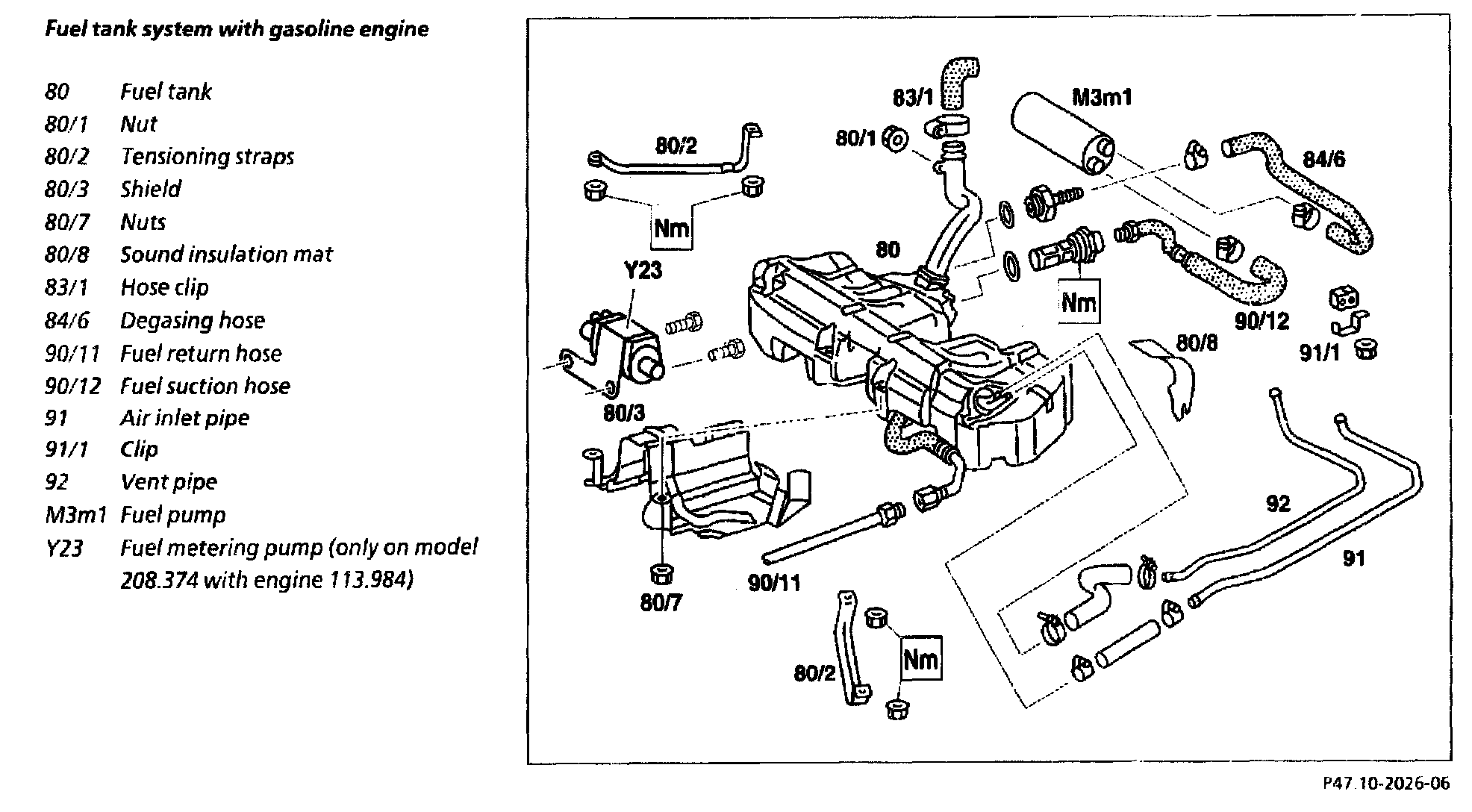 5 Pinch off fuel hose (90/12) at the suction side and vent hose (84/6) with Pierburg fuel pump