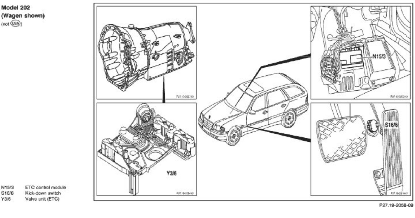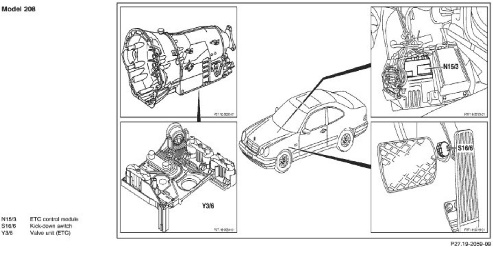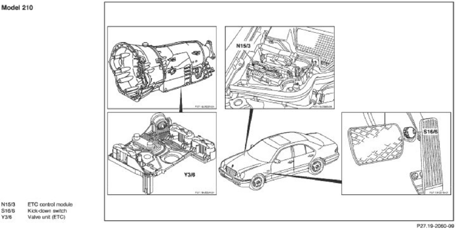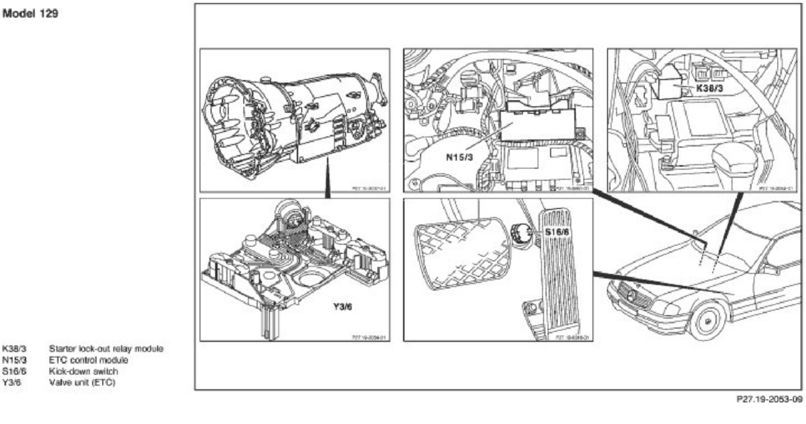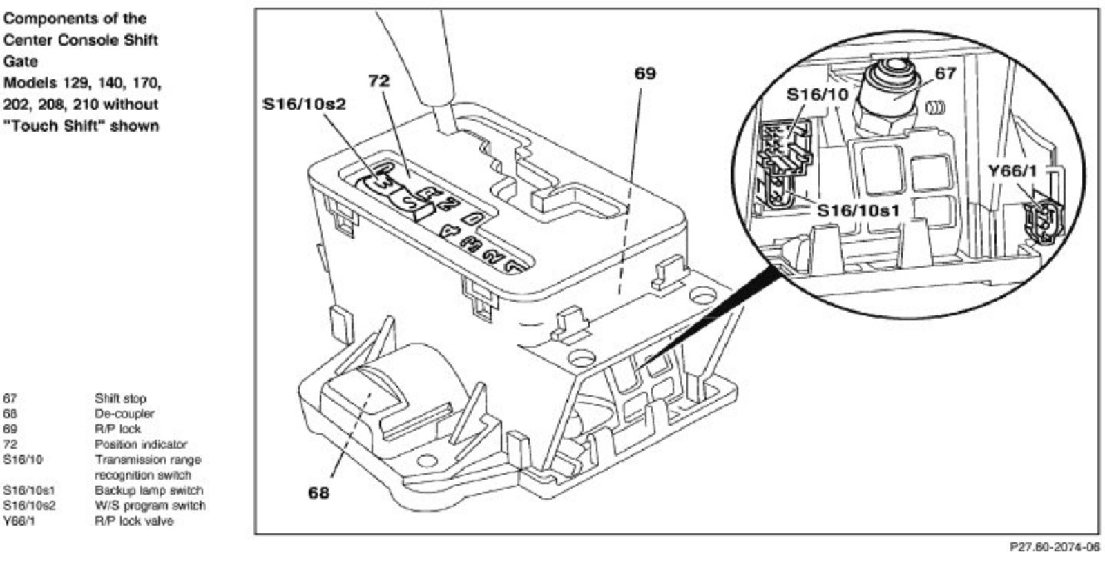 Components Of The Center Console Shift Gate - Models 129, 140, 170, 202, 208, 210: