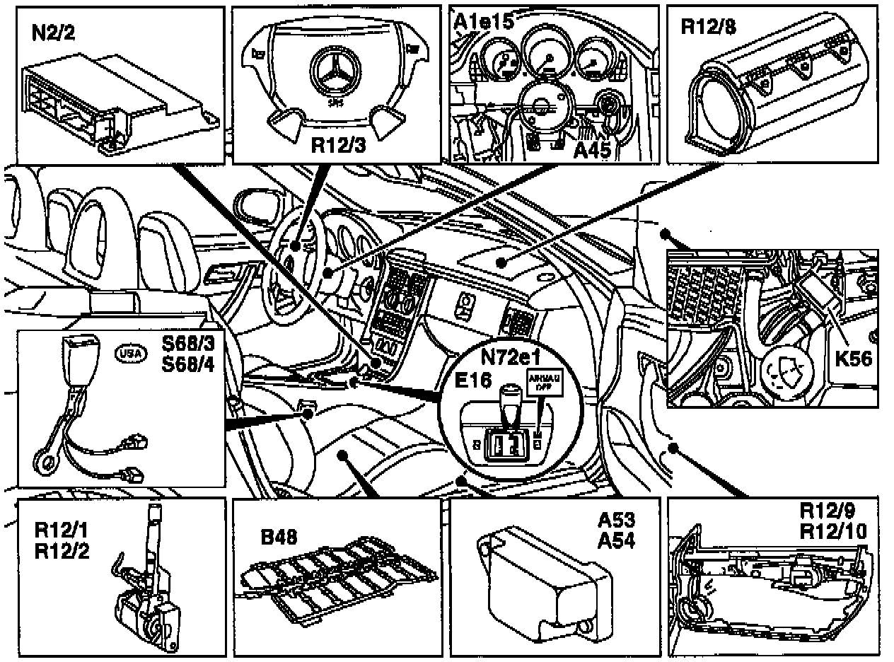 S68/4 Right front seat belt buckle switch (airbag/ETR) (USA)