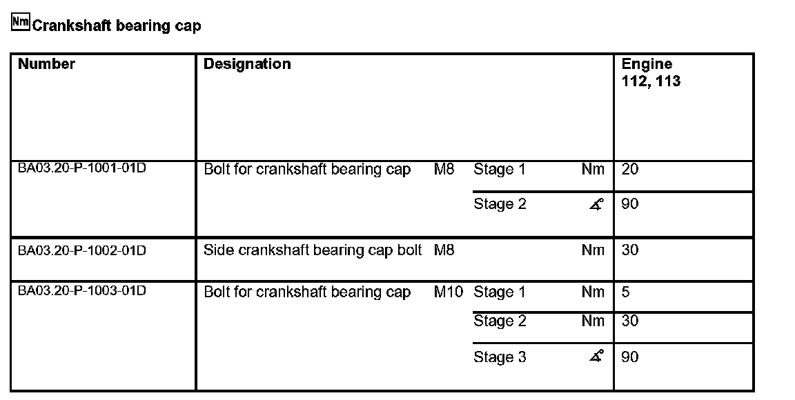 Note specified torque and tightening angle of the bolts. If no torquing angle wrench is available, the bolts can be torqued further by the specified angle in a single operation using a wrench and locking handle. Do not use a flexi-rod torque wrench for tightening in order to avoid any angle errors.