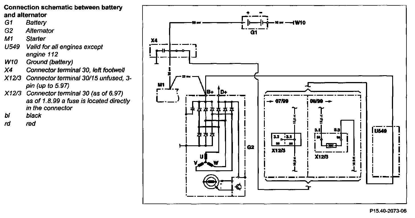 2 Check the alternator fuse (G2) in the connector terminal 30 (X12/3) and replace if necessary