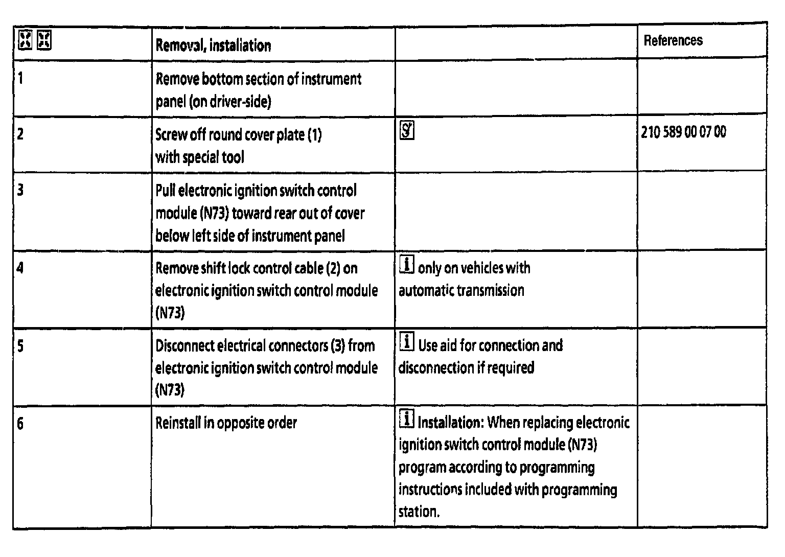 Removal/Installation, Steps 1 - 6: