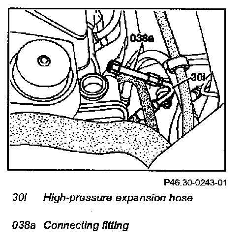 3 Attach connecting fitting (038a) to high-pressure expansion hose (30i).