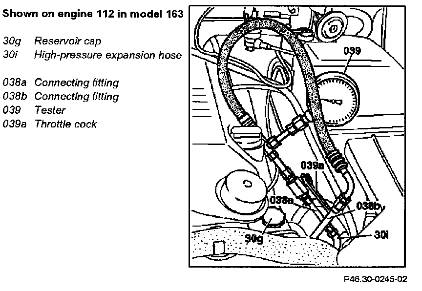 NOTE: On vehicles with tandem pump the tester must not be connected to the pressure oil pump for the Adaptive Damping System (ADS) with level control (Code 216b).
