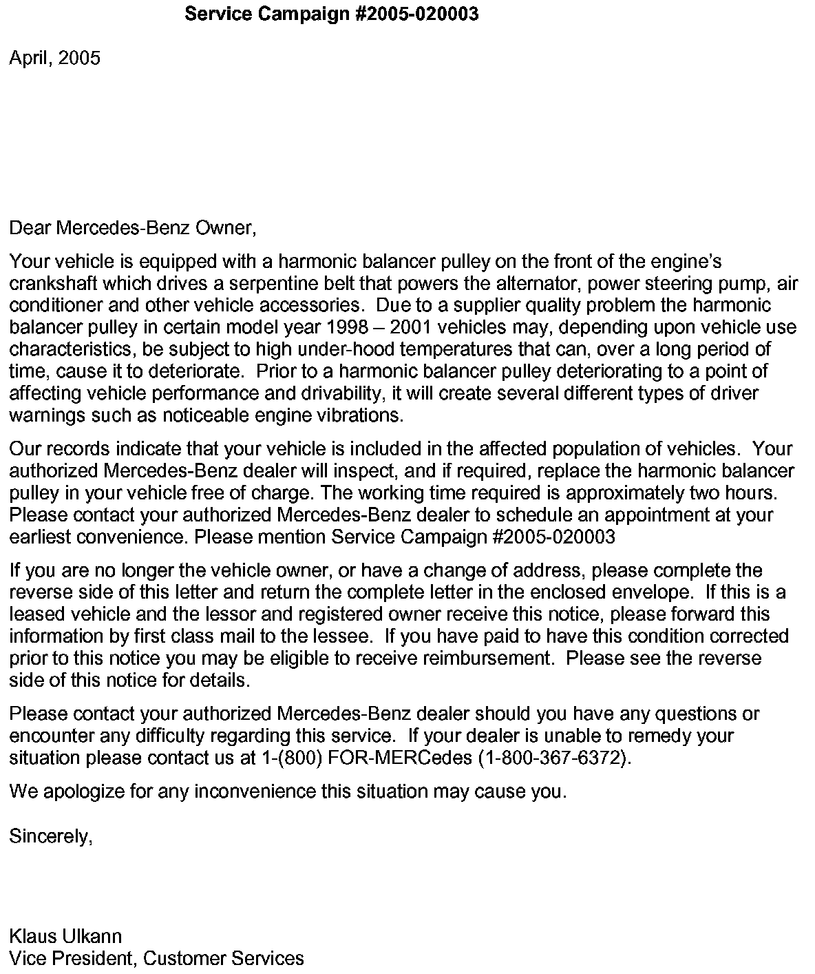 Campaign - Harmonic Balancer Inspection/Replacement
