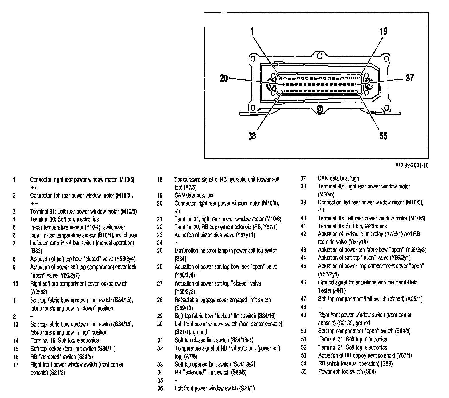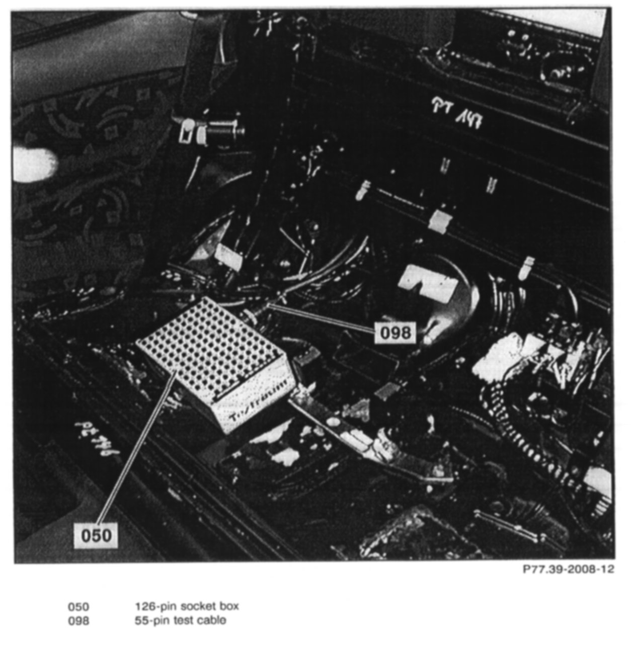 Before connecting the test cable, if possible open the rear side windows with the power soft top switch (S84).