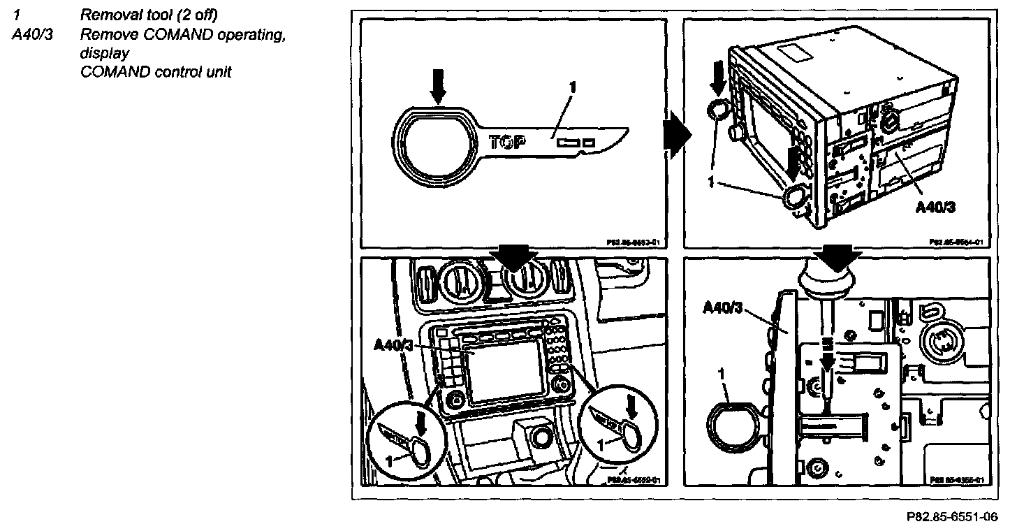 NOTE: Insert screwdriver into one of the release holes (arrow).