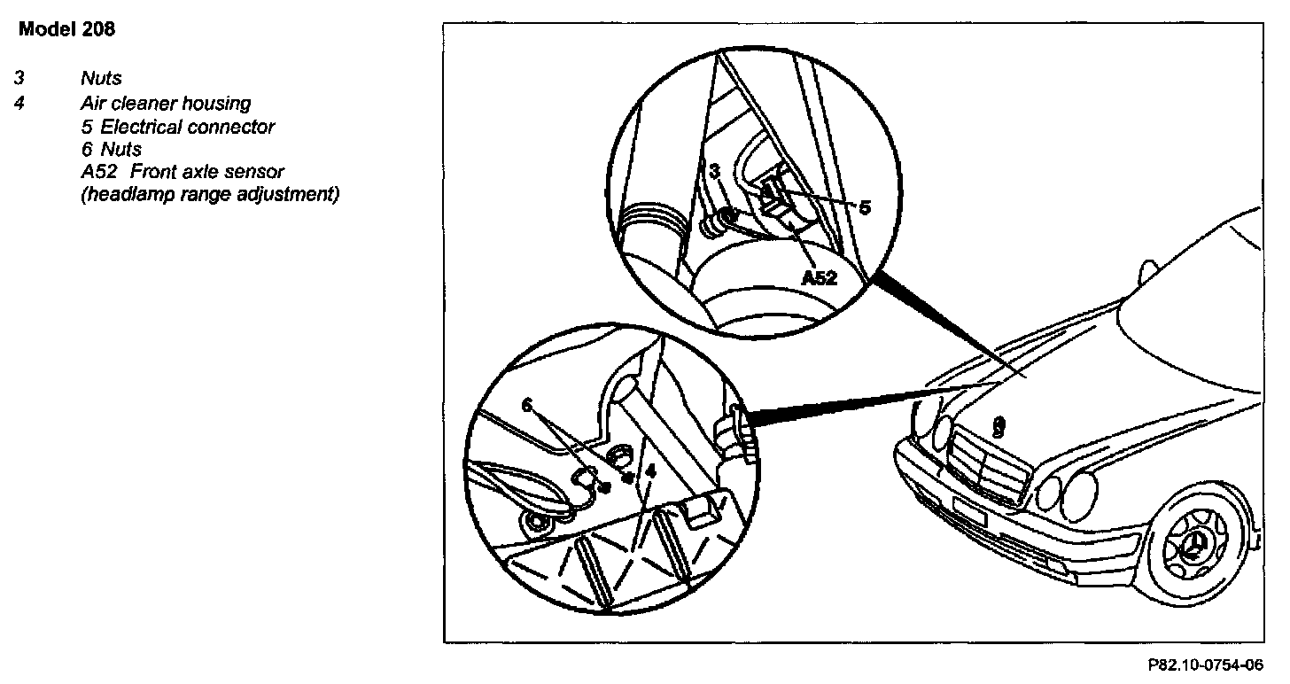 6 Remove front axle sensor (headlamp range adjustment) (A52)