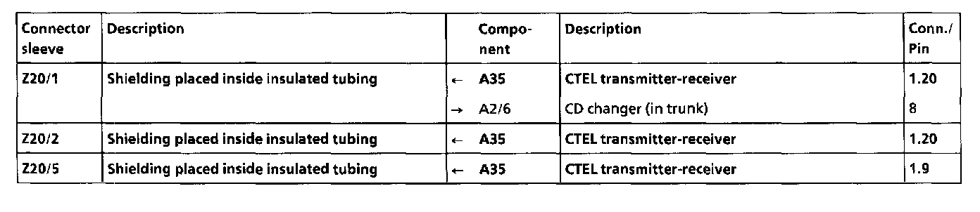 Trunk (Left), Connector Location, Arrangement and Assignment of Z Connector Sleeve,: