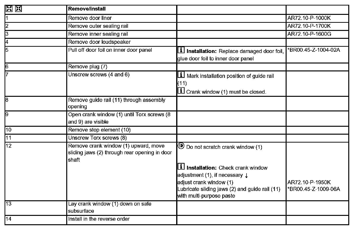 AR72.10-P-1900K Remove And Install Front Door Crank Window