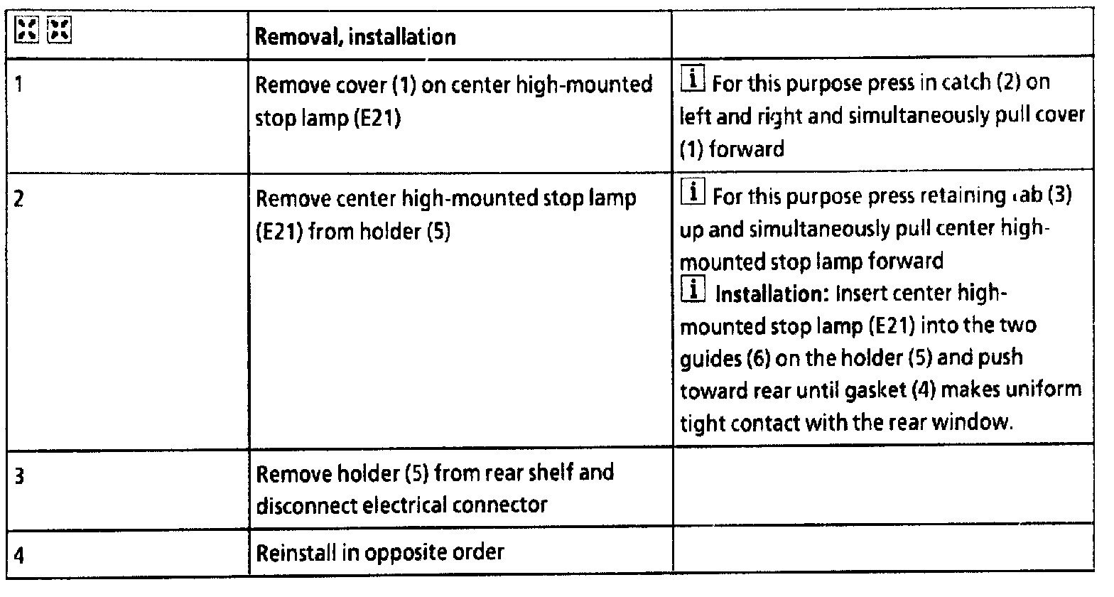 Center Mounted Brake Lamp: Service and Repair