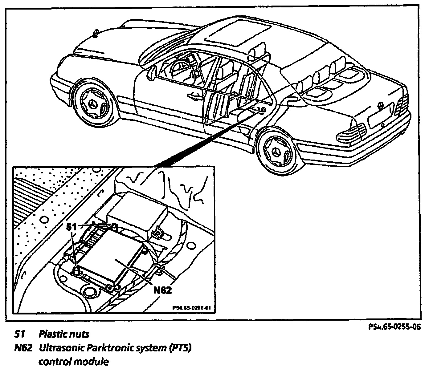 4 Remove Parktronic system (PTS) control module (N62)